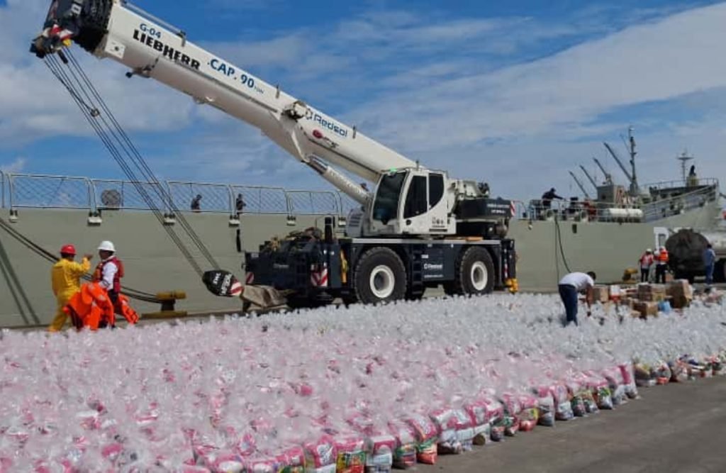 El gobierno de Tabasco inició el miércoles el embarque de 50 toneladas de apoyo humanitario con destino a Veracruz, a bordo del buque ARM Isla Holbox, en el Muelle 2 de la Terminal de Usos Múltiples de Asipona, Dos Bocas, Paraíso.